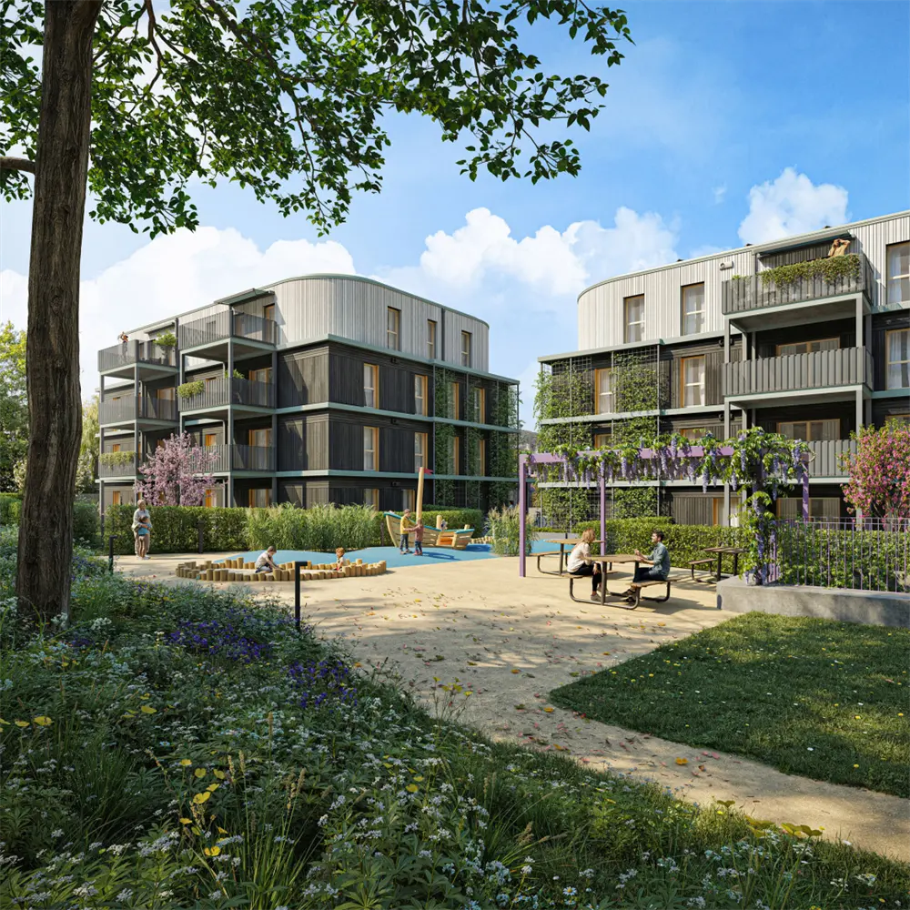 Das nachhaltige Wohnprojekt umfasst vier Stadtvillen mit jeweils vier Geschossen, eingebettet in eine großzügige Grünanlage. 47 moderne Eigentumswohnungen mit 2 bis 5 Zimmern (53–104 m²), gestaltet von MAGK Architekten, bieten höchsten Wohnkomfort. Die Gebäude werden oberirdisch komplett in Holzbauweise errichtet – für eine behagliche Atmosphäre und ein gesundes Raumklima.